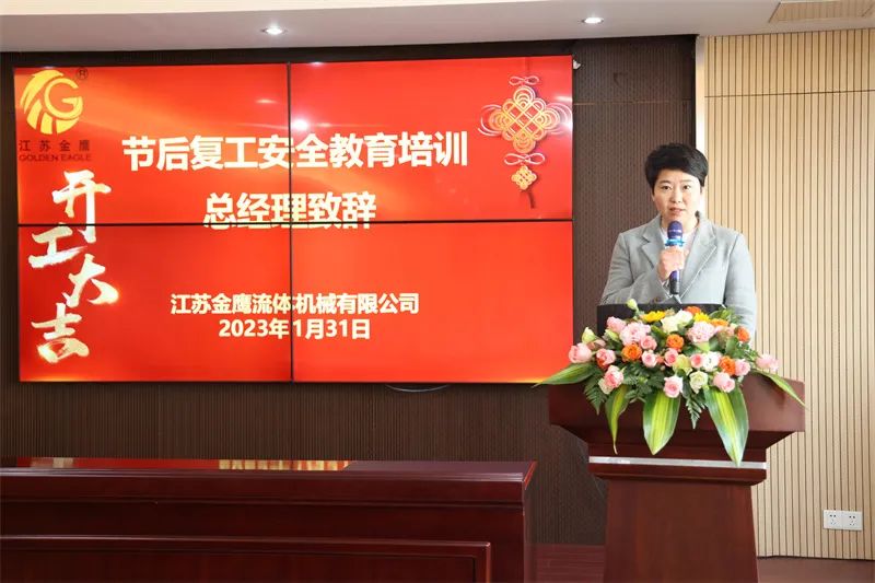 在會議上總經(jīng)理作復(fù)工動員致辭,童總經(jīng)理代表公司向在過去一年辛苦付出的金鷹人送去新年的祝福,并強調(diào)了快速全面復(fù)工的重要性、迫切性、責任性,保證人到崗、心在崗,馬上行動,身心一致地投入各項工作中。